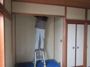 長年に渡って、子供達やワンちゃんが傷を付けてきた、ある意味いい思い出のある和室壁の塗替えです。
