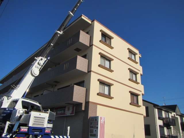 マンションやハイツなど高い建物の場合は材料をレッカーを使用して材料を荷上げする事があります。