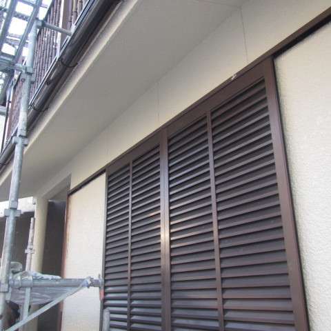 こちらも壁塗装が終わって雨戸なども付帯工事も完了しました。