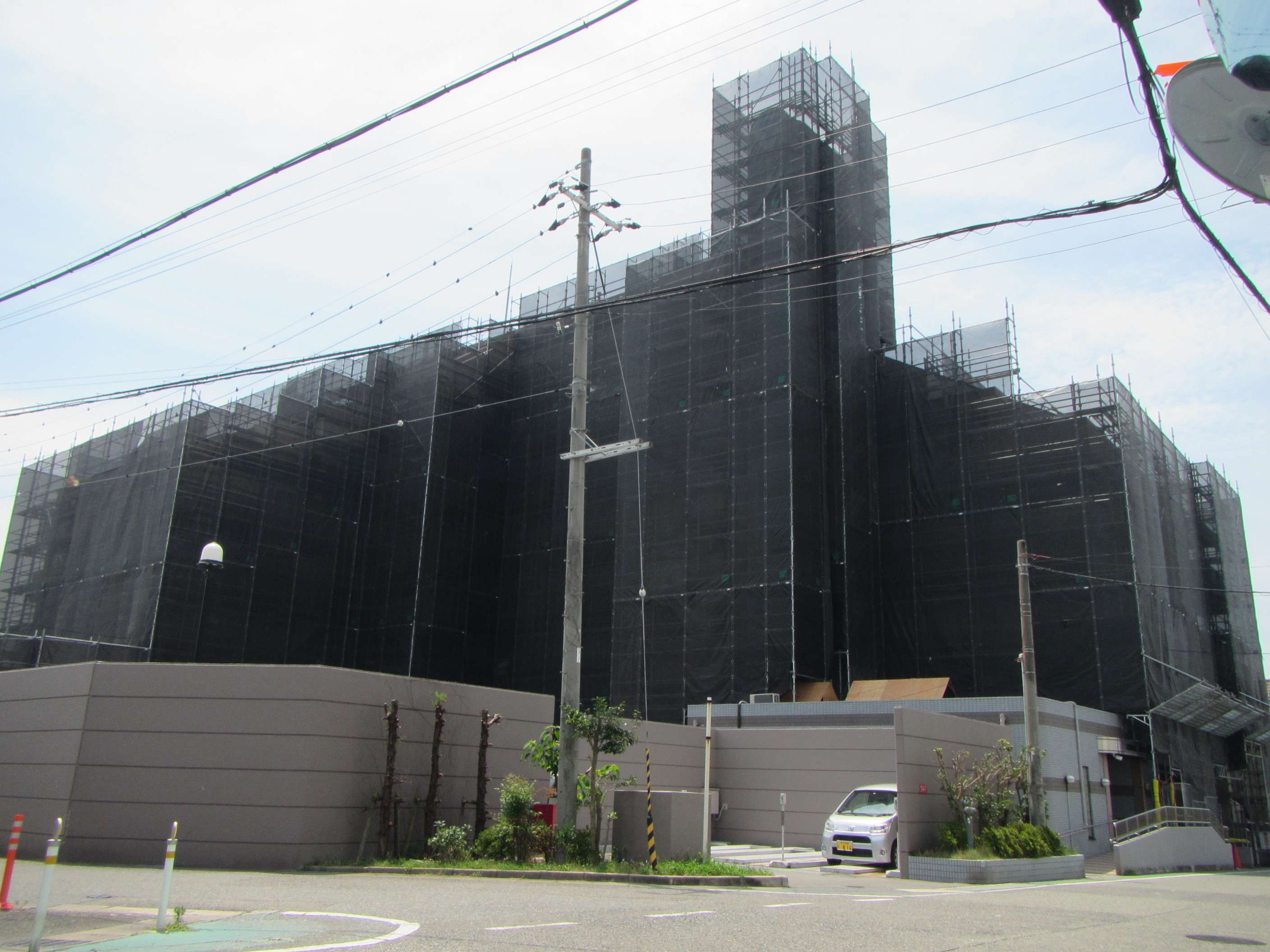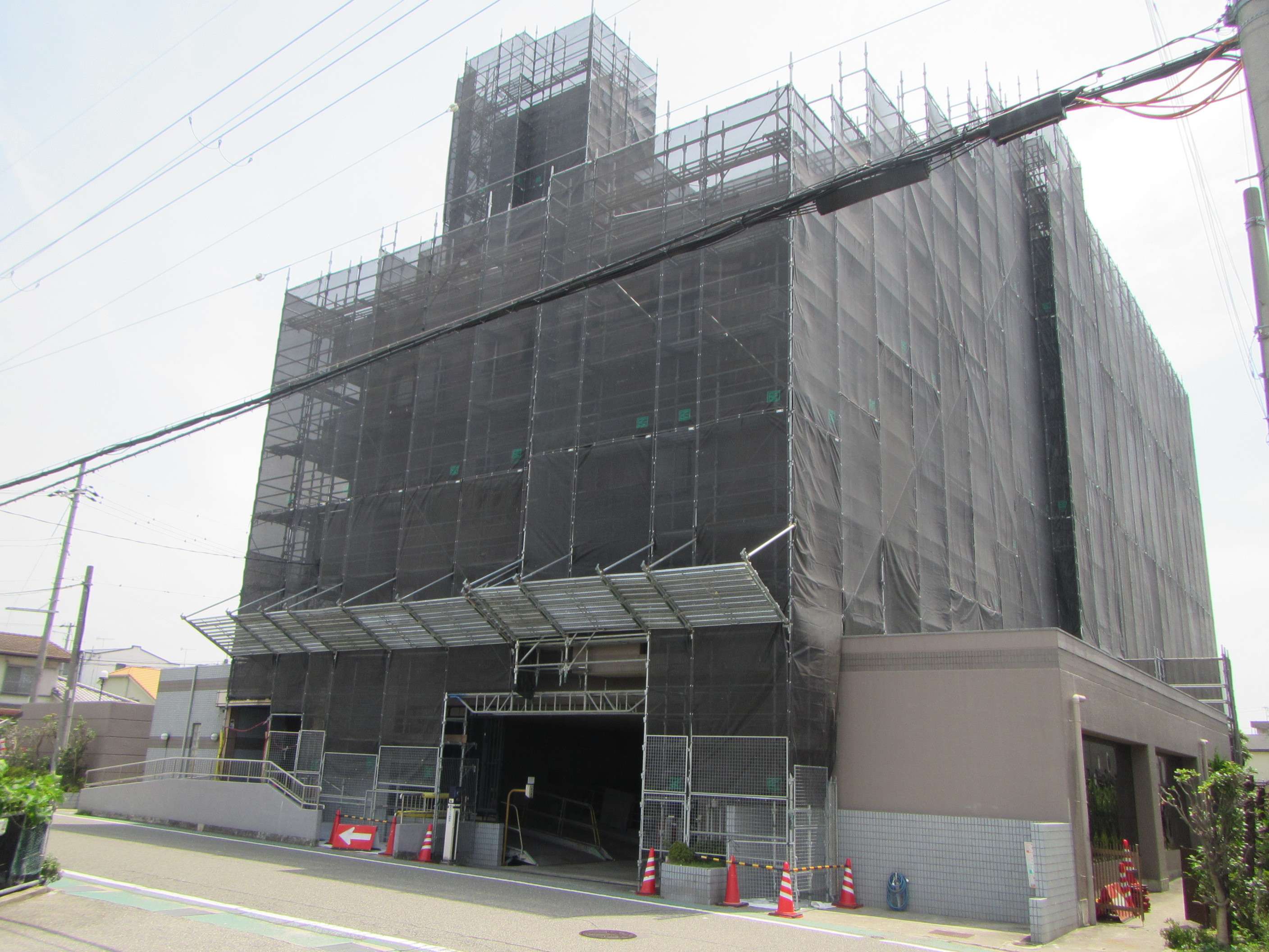 マンション外壁 足場仮設工事完了