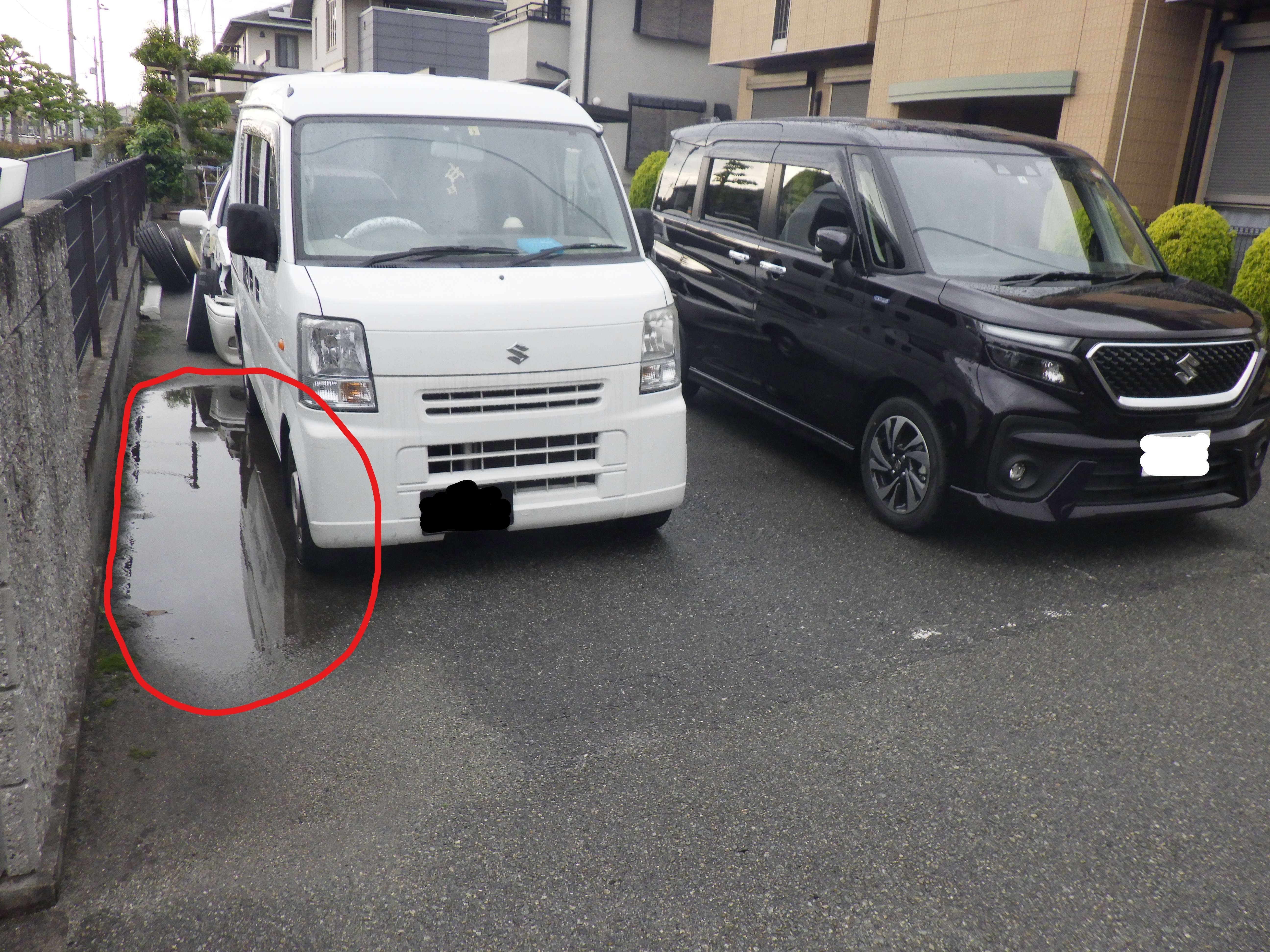 雨水が溜まる場所の壁際のアスファルトを斫りにより