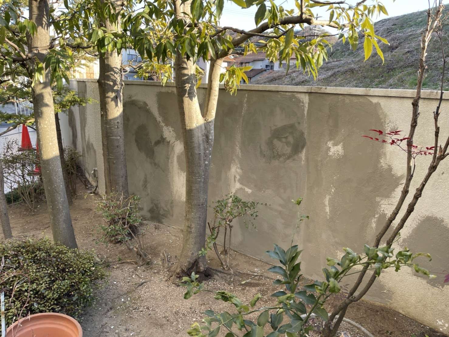 特に塀の壁面が全体に塗膜が浮いてしまっています